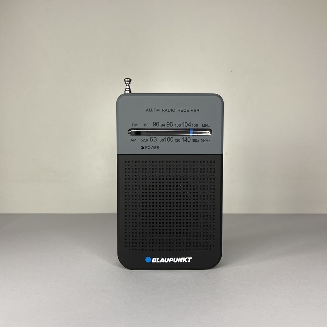 Przede wszystkim marką i jakością wykonania. Blaupunkt to producent z wieloletnią tradycją w branży audio. PR3BK oferuje solidną obudowę, pewny klips, sprawdzoną antenę teleskopową i czyste brzmienie głośnika – cechy, których próżno szukać w jednorazowych odbiornikach z najniższej półki.
